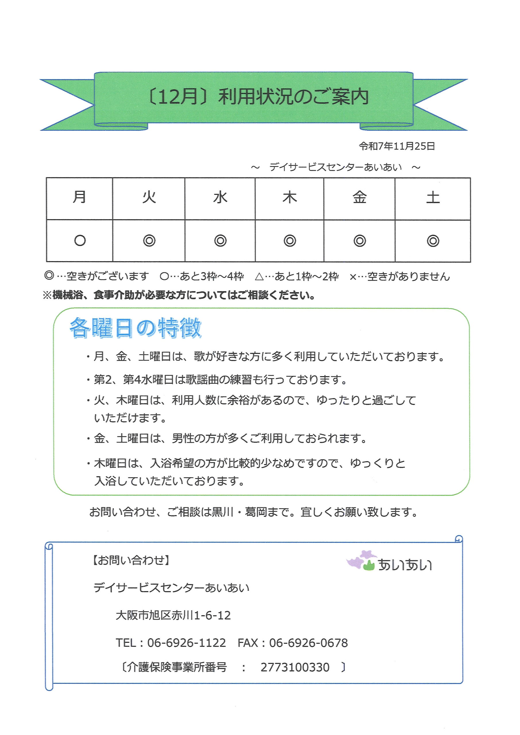 空き情報(デイ・短期)、デイレク情報