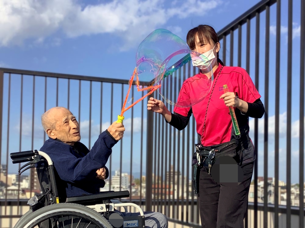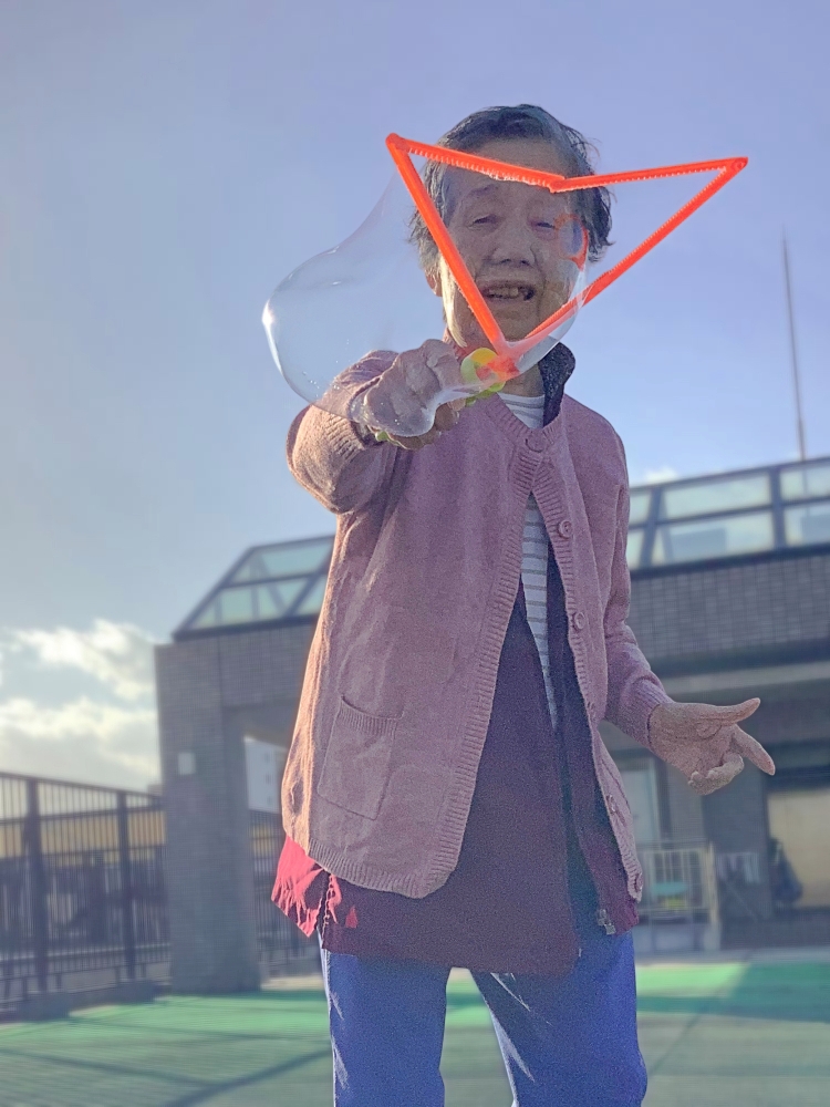 機能訓練の後はシャボン玉遊び♪