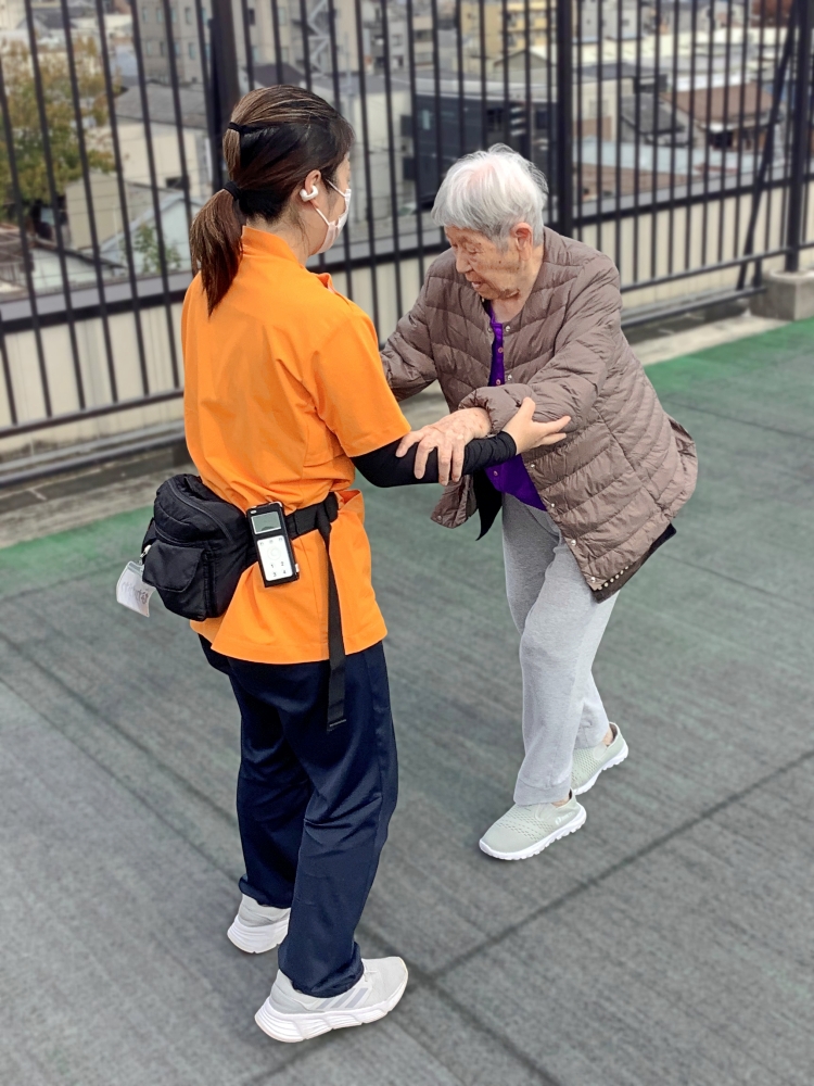 天気もいいので気分転換も含め屋上で機能訓練。