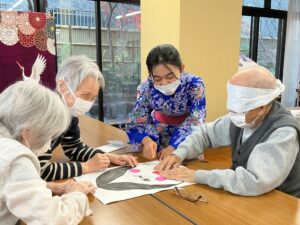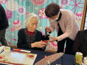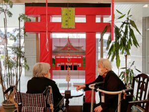 新年会のあとは、施設内の神社へ参拝し、皆さま