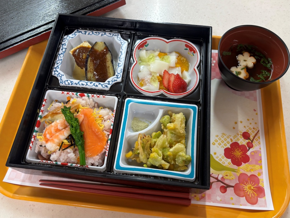 桜寿司や、そら豆とトウモロコシのかき揚げなど、
