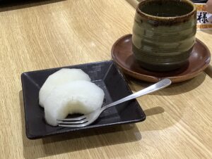 デザートには果汁たっぷりの梨を召し上がっていただき、