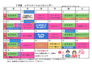 ◆あいあいデイ利用状況のご案内・レクカレンダー
